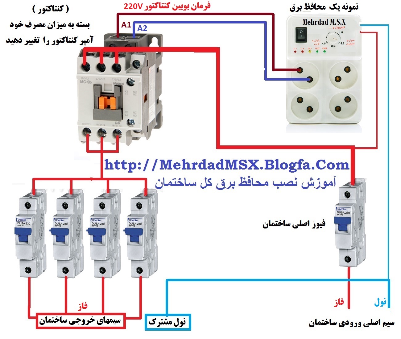 با این نقشه می توانید به فیوز مینیاتوری خود متصل کنید فقط در نظر داشته باشید طبق نقشه ، اول از فیوز اصلی خود به محافظ و کنتاکتور بدهید سپس به فیوزهای خروجی متصل کنید چند دلیل دارد یکی از دلایل مهم این است که با اتصالی در واحد محافظ شما اسیب نمی بیند و هم برق کل واحد قطع نمی شود .