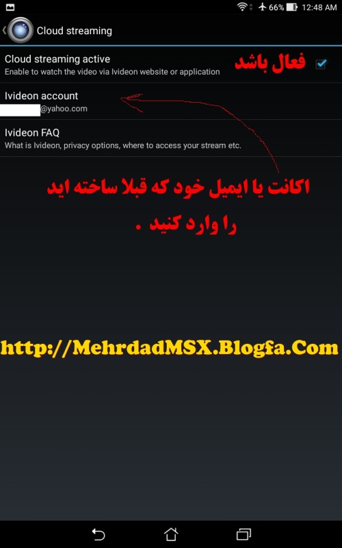 بعد از ساخت اکانت وارد برنامه اصلی شوید و در قسمت Cloud Streaming اکانتی که ساختید را وارد کنید . باید تیک Cloud Streaming برای شما فعال شده باشد اگر فعال نشده آن را فعال کنید .