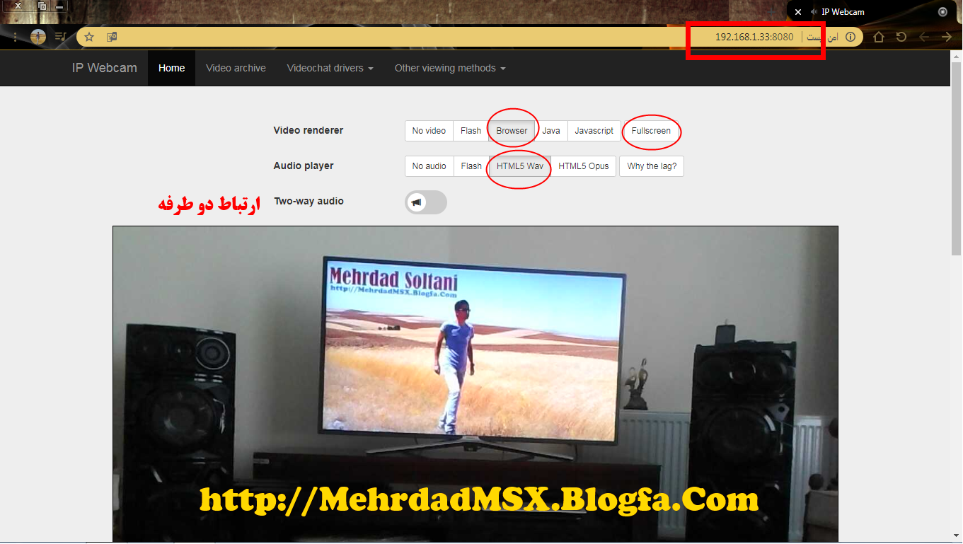 برای مثال چنین آدرسی داده است: http://192.168.1.33:8080